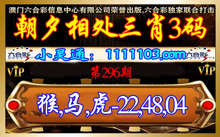 296期:✨朝夕相处✨【三肖3码】【,马,虎|22,48,04】开:猴22