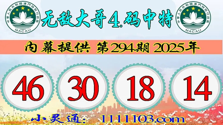 294期:✨无敌大哥✨【4码中特】【46,30,18,14】开:鼠18 准